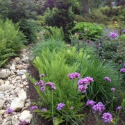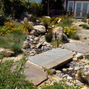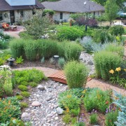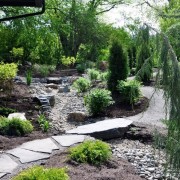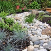 При оформлении сухого ручья можно решить сразу несколько проблем, которые могут возникнуть в связи с особенностями рельефа или местоположения. Если на участке имеется склон, то поток камней, спадающий с пригорка, будет смотреться очень органично. А расположенные вдоль него цветники и клумбы сделают ручей еще более выразительным. В то же время цветочные композиции вовсе не будут казаться неуместными на склоне, а напротив будут смотреться очень оригинально и гармонично.
