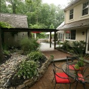 Говоря об экстерьере в целом, включая стилистику фасада дома и ландшафтный дизайн прилегающей территории, следует сказать, что такой элемент, как сухой ручей отлично впишется в любой стиль, независимо от того классический ли это оформление или новомодный хай-тек. Что касается расположения, то сухой ручей может быть оформлен как впереди строения, так и в глубине сада. Также изгибы потока из камней могут извиваться по всему участку, разделяя его на отдельный зоны. К примеру на зону отдыха и на зону с садовыми деревьями.
