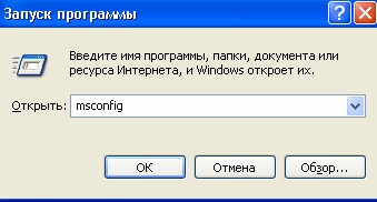 Пуск -Выполнить, в открывшемся окне вводим команду msconfig.