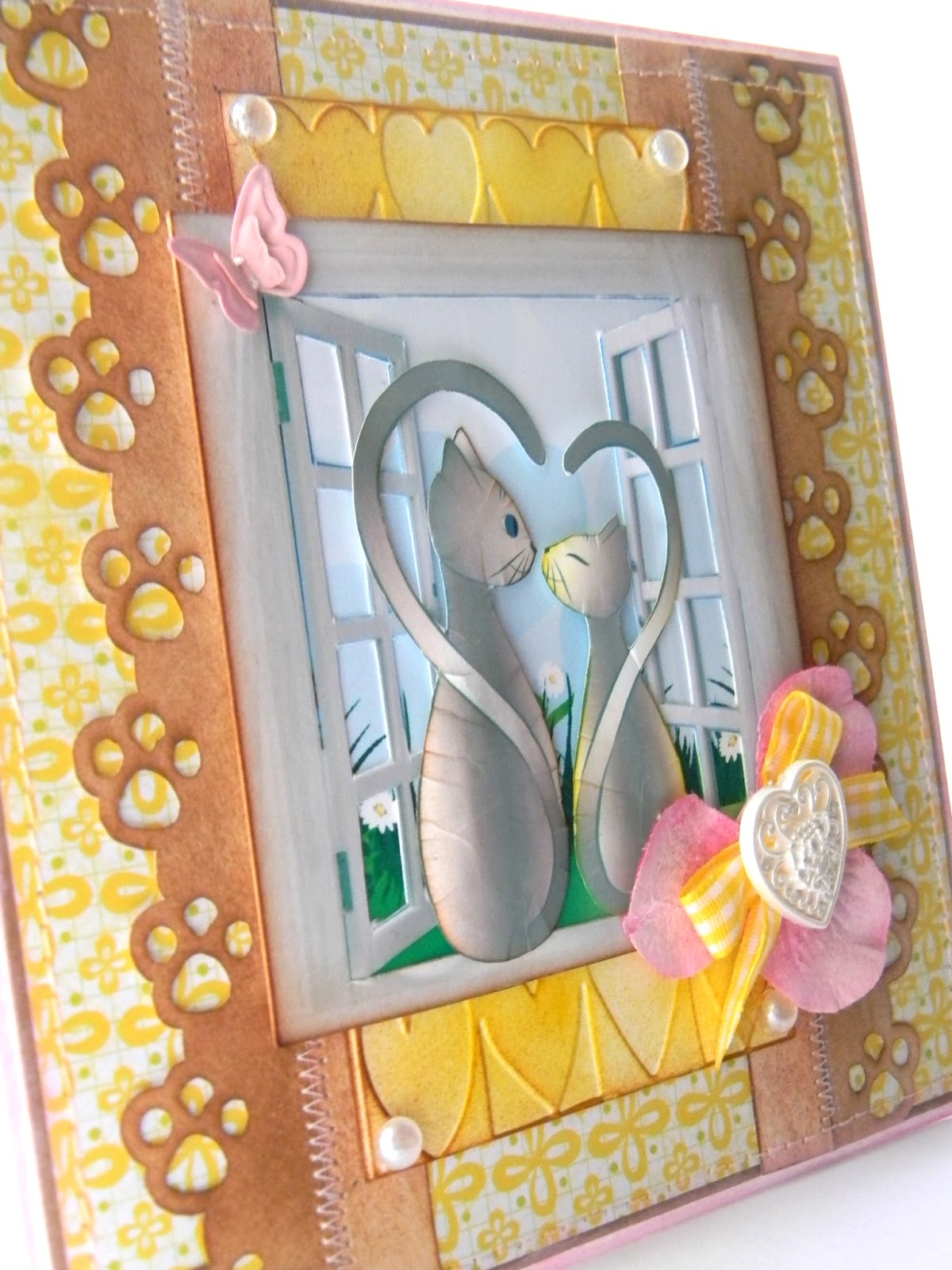 Котики посажены на объемный скотч, окошко вырезано и наложено на фон с травкой)