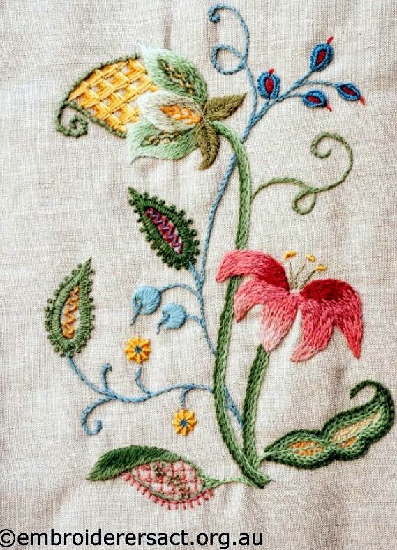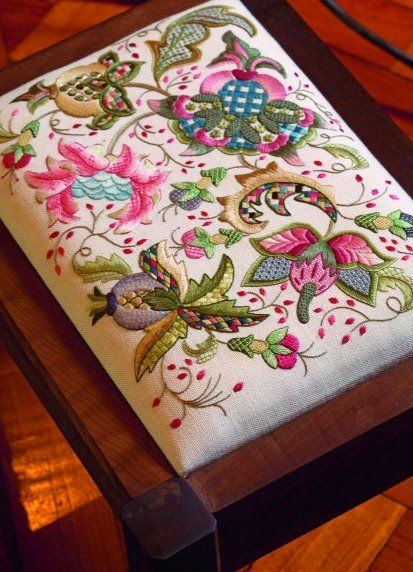 Crewelwork– это вид декоративной вышивки выполненной в смешанной технике с использованием шерстяных ниток и большого разнообразия обычных вышивальных швов