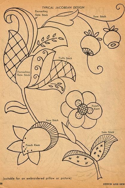 [240x320]Разновидность вышивки Crewelсформированная в период правления Короля Якова Iполучила названиеJacobean embroidery(«Якобинская вышивка»).