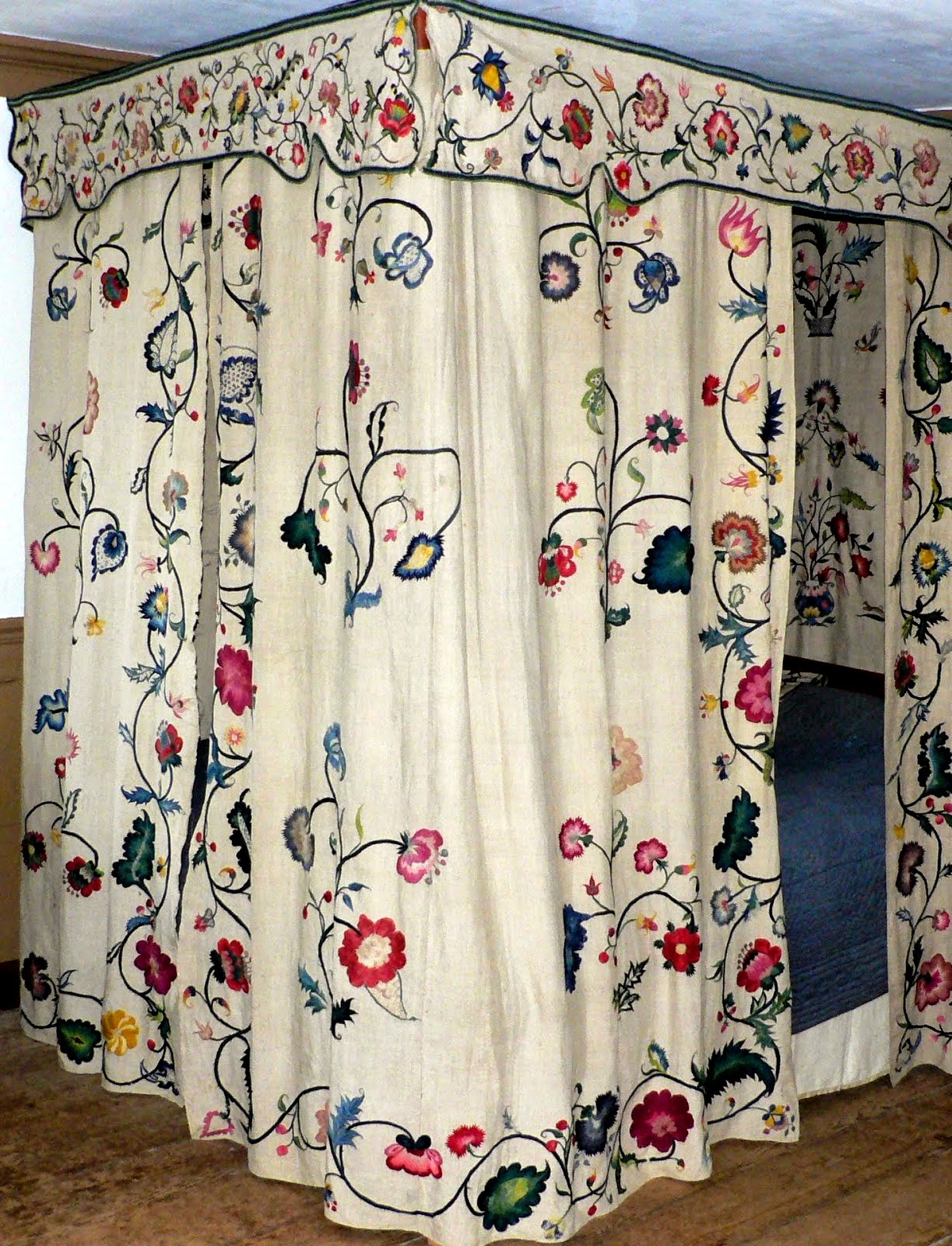 [304x400]Наибольшей популярностью среди них пользовались шторы, настенные панели, покрывала и балдахины для постели, которые призваны были спасать от лютой стужи и ужасных сквозняков, как владельцев роскошных каменных замков, так и хозяев домов поскромнее.  В качестве основы для вышивкиCrewel традиционно использовали