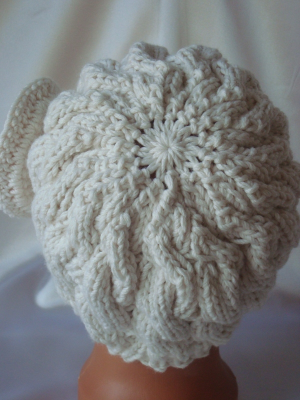 Когда на спицах осталось 15 п., отрезать конец подлиннее и протянуть его крючком через все петли, закрепить нить, убрать все концы.