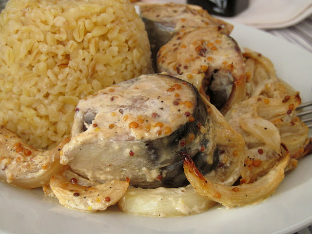 Вкуснейшая и очень сочная рыбка, запеченная с лучком в пикантном горчичном соусе! Вкус совершенно нетривиальный и интересный!!