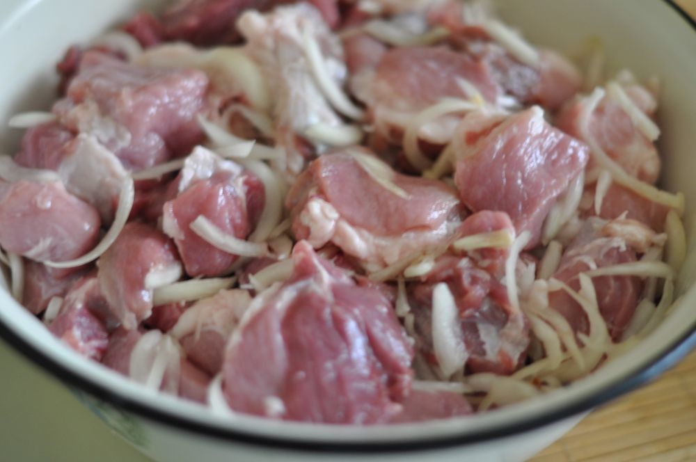 Дальше нам нужен лук. Много. Полкило на полтора килограмма мяса, как минимум.