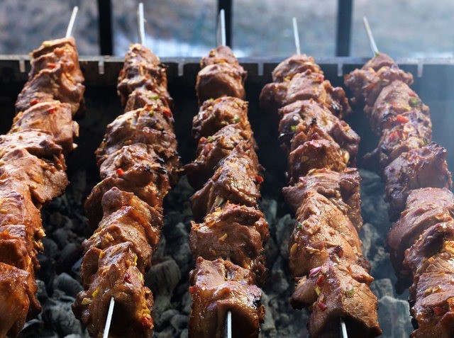 На шампур его нужно нанизывать, протыкая от внутреннего слоя наружу каждую четвертинку.