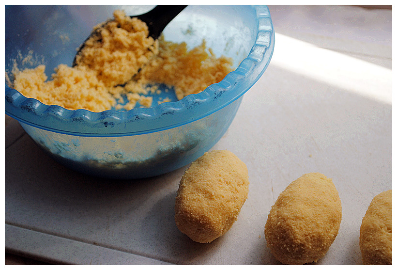 Когда наши картошечки вылеплены нам нужно обвалять их в какао порошке смешаном с сахарной пудрой (по одной чайной ложке с горкой того и другого ).Хорошенько обваливаем картошки и оставляем минут на 10.Потом повторить обваливание.