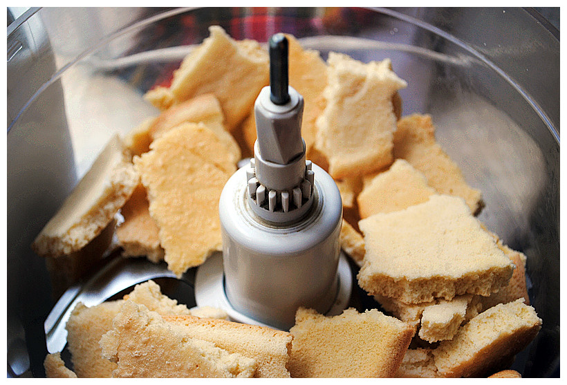 Для начала измельчаем наш высохший бисквит в мелкую-мелкую крошку.
