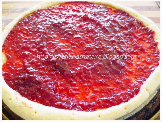 4.На лепешку равномерным слоем наносим малиновый джем.