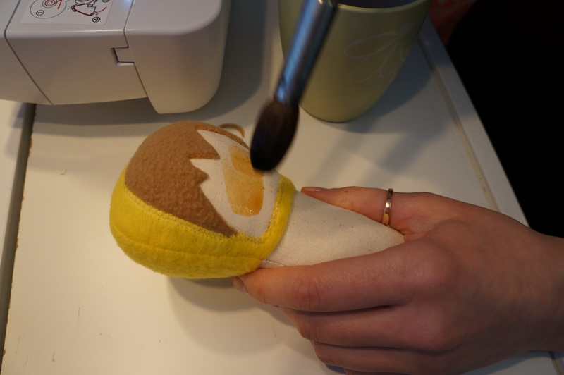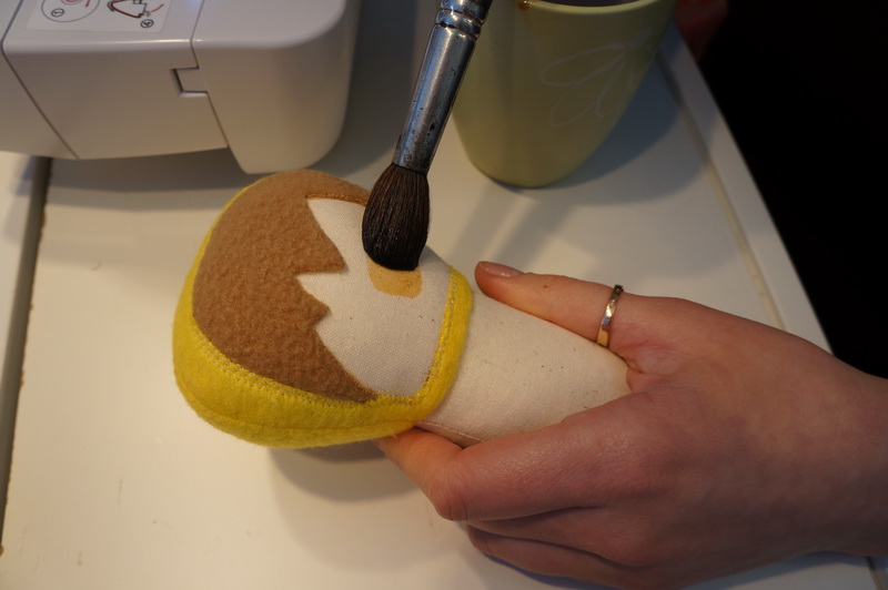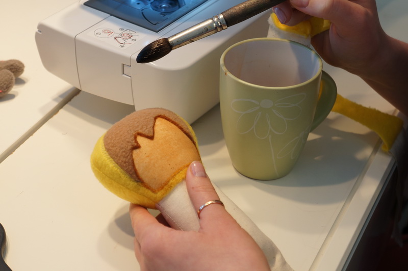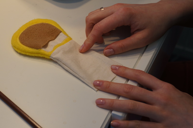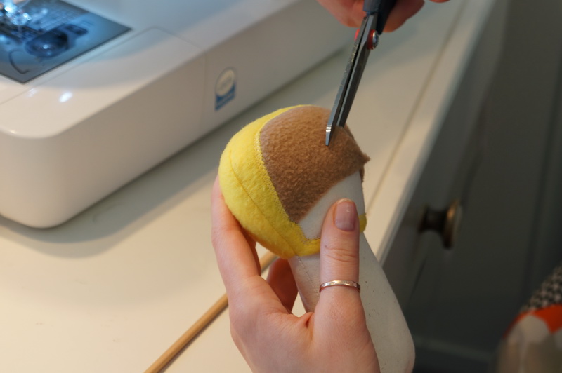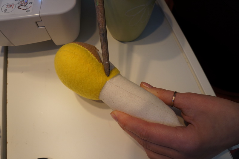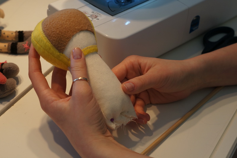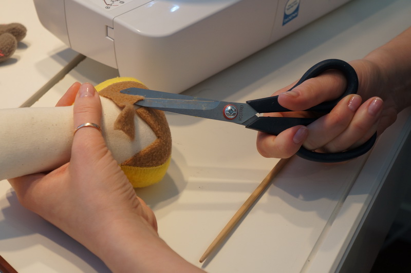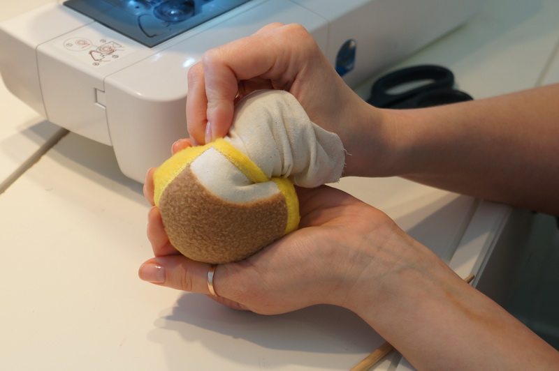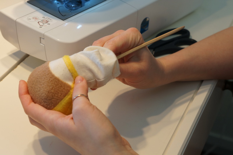 6. Набиваем туго, в процессе наполнитель расправляем руками и палочками,