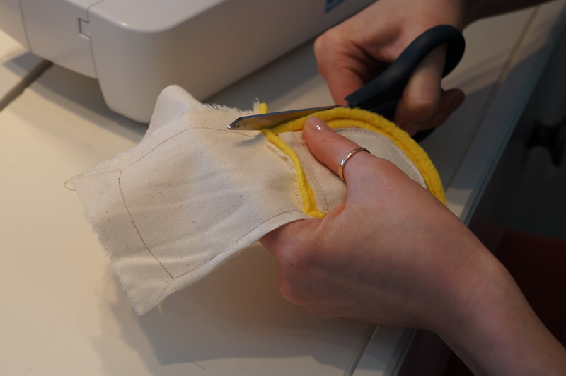 Соединяем 2 кусочка ткани лицом внутрь и сострачиваем