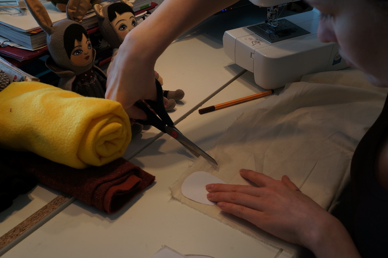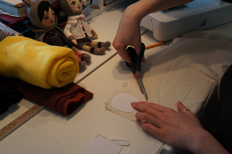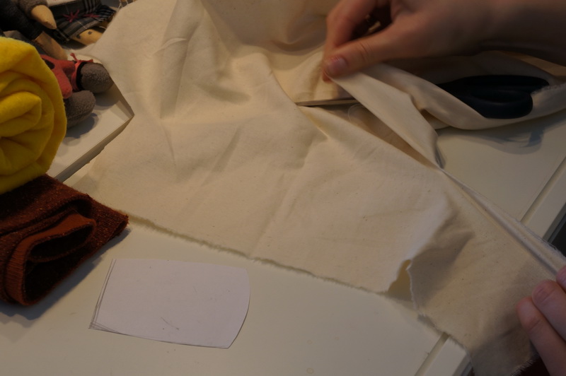ЛИЦО.Вырезаем кусочек однотонной хлопковой ткани для лица, оставляя припуски.