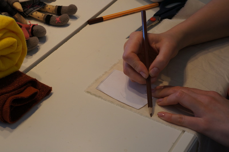 На однотонной ткани отмечаем размер туловища с припусками на швы, контуры пока не рисуем.