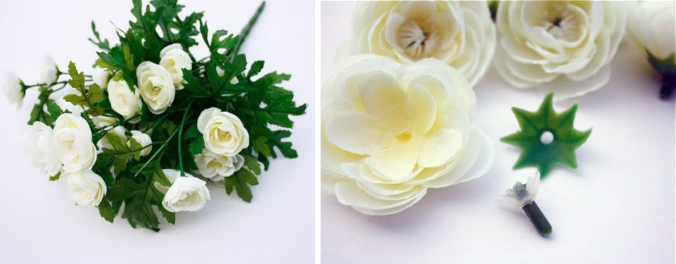 Сделано из войлока с липучкой, лепестков тканевых цветов и жемчужных бусинок.