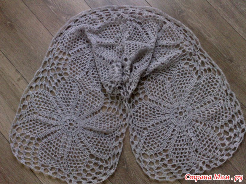 Я связала такую шаль, но только узкую, цветы у меня в один ряд, получилось конечно не так красиво как оригинал, но я думаю не плохо. Мне нужна к шляпе шаль. Вот что у меня вышло.