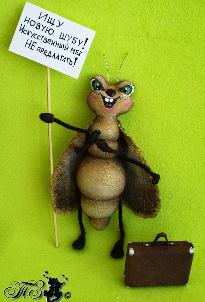Давно заглядывалась в интернете на всяких-разных забавных насекомышей, в том числе и молей, но у самой всё руки не доходили... А тут у подруги ДР, захотелось сделать что-то новое и оригинальное. Так родилась моль Молли.