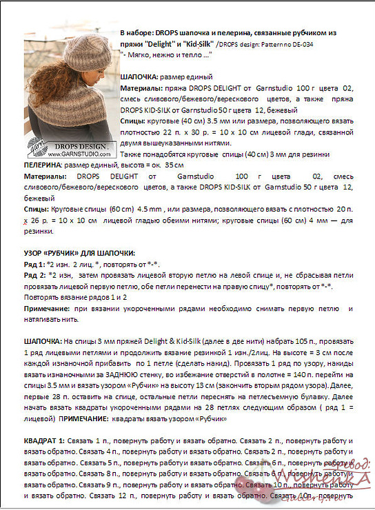 Шапочка и пелерина из меланжевой пряжи (вязание спицами)
