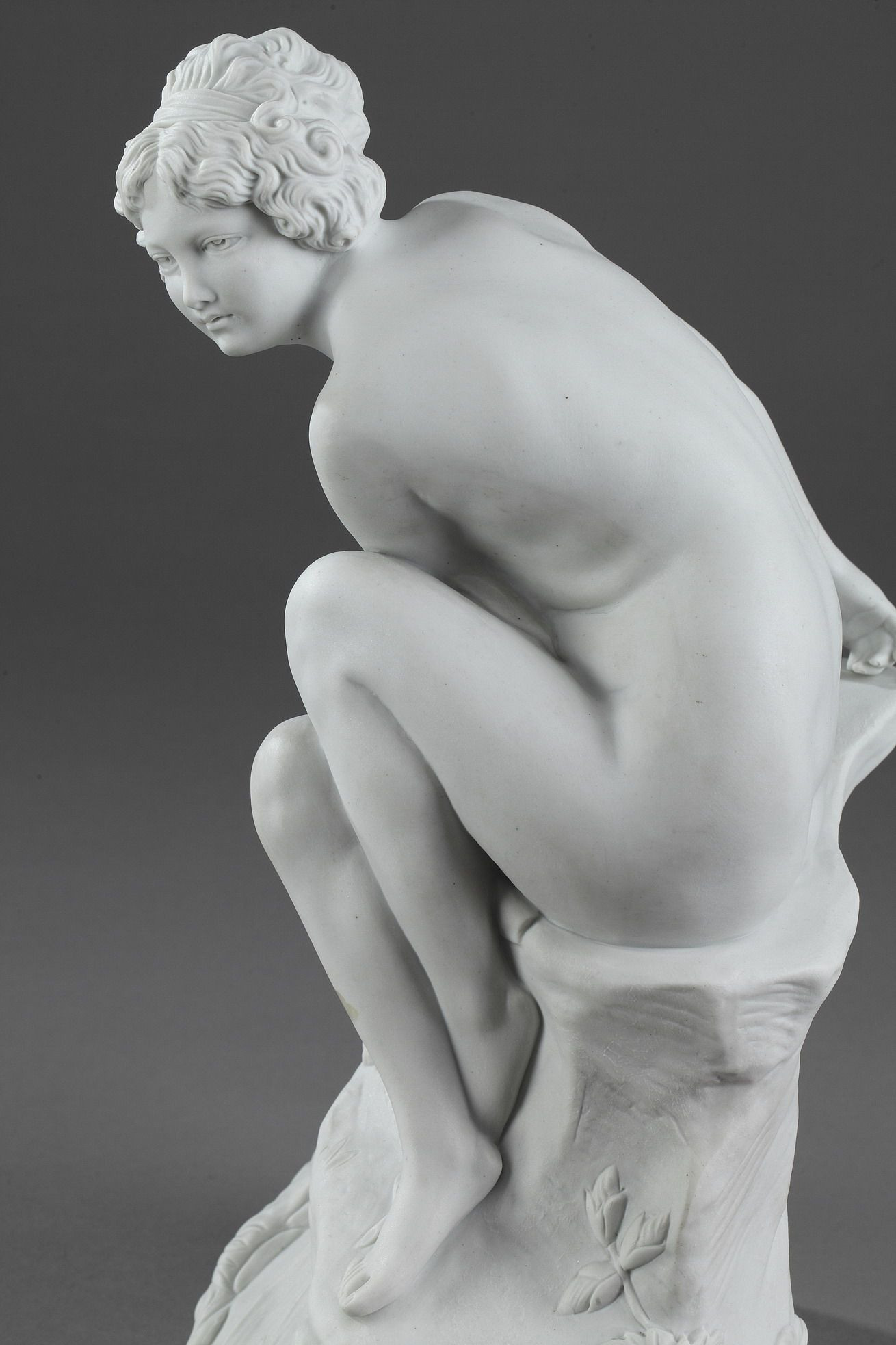 Статуэтка из бисквитного фарфора, изображающая обнаженную женщину, сидящую на скале, работы итальянского скульптора Рафаэля Наннини.1880г