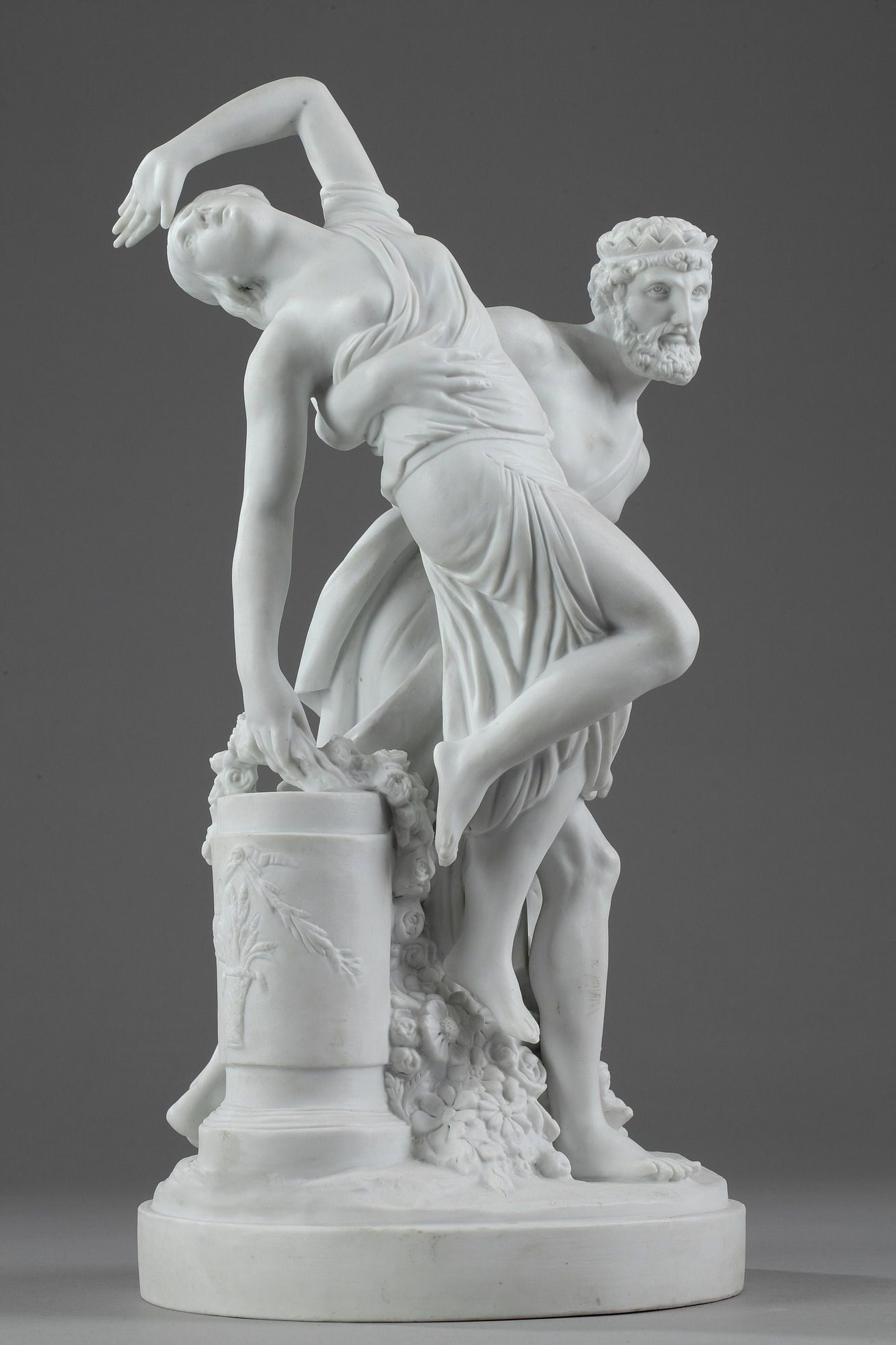 Группа из бисквитного фарфора по модели, приписываемой Луи-Симону Буазоту, хранящейся в Севрском музее. На ней изображена Прозерпина, одетая в струящуюся тунику, в момент ее похищения Плутоном, царем подземного мира. 1850г