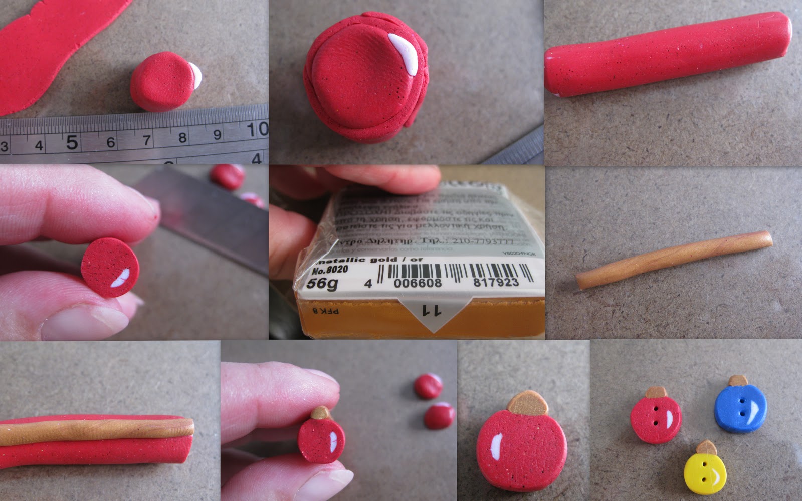 Для этих ёлочных шариков я взяла красный fimo effect - с глиттером, на фото не видно, но он очень симпатично выглядит - блестит и переливается на солнышке, очень нарядненько! Но в принципе можно взять любую пластику, тоже будет хорошо.