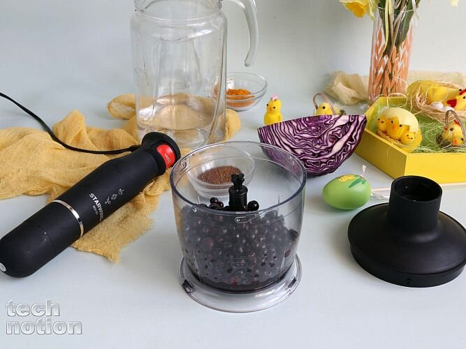Я предварительно размораживаю ягоду. После чего опять же отправляю в блендер и превращаю в яркую кашицу.