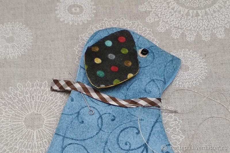 11. Детали тельца соединяем также потайным швом от точки 1 до точки 6 (выкройка). В точках 2-3 оставляем отверстие для шнурка. В точке 4 пришиваем носик-бусину.