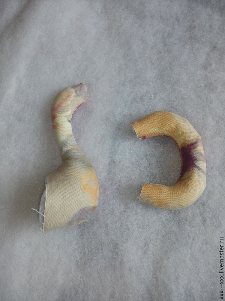 Когда идеальный вариант подобран, прошиваем с изнаночной стороны и вырезаем наши детали. Набиваем синтепоном.