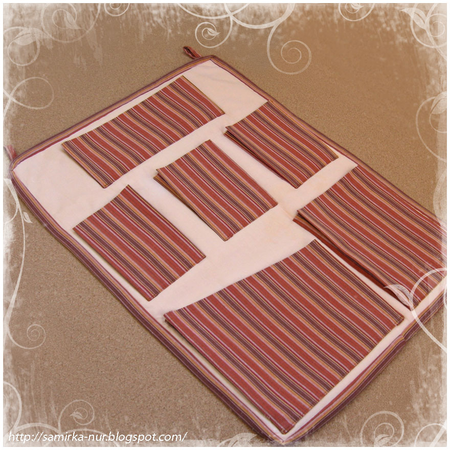 Кармашки в комплект к зайчику-мальчику из предыдущего сообщения. Супер-вместительные. В нижних больших карманах будет храниться фен и утюжок для волос. Размер всей конструкции 40 х 60 см.