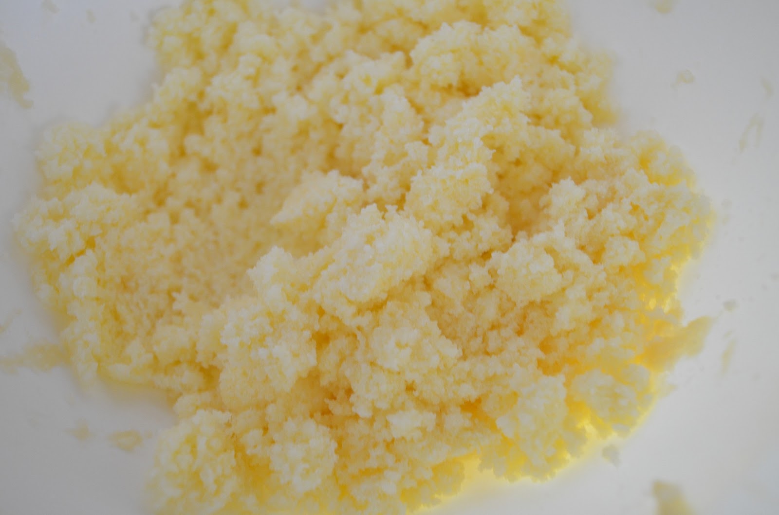 в отдельной миске растереть руками сахар и сливочное масло в крошку