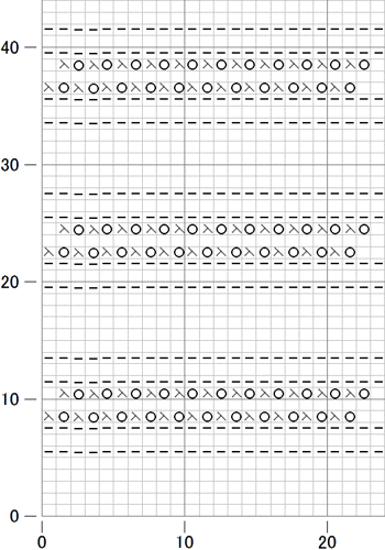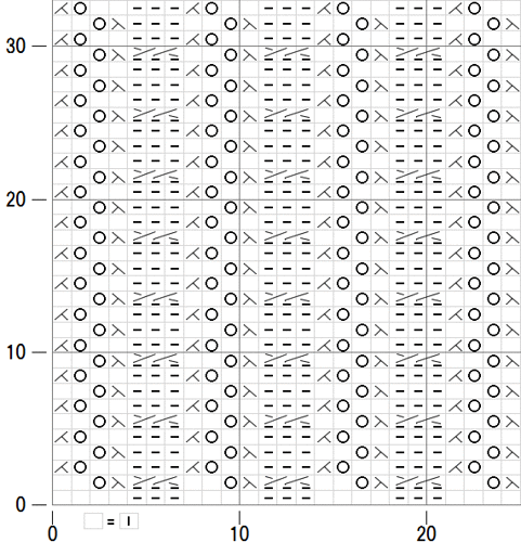 11 ряд: вяжем как 5 ряд. Раппорт узора в высоту с 6-11 ряд
