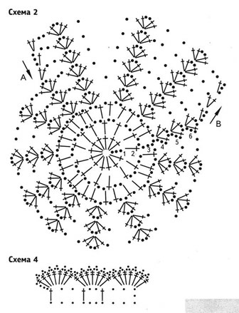 5-й р.: 1 возд. п. подъёма, в каждую арку из возд. п. 4-го р. вязать 1 ст. б/н, 1 полуст, 3 ст. с/н, 1 полуст., 1 ст. б/н, 1 соед. ст. в возд. п. подъёма.