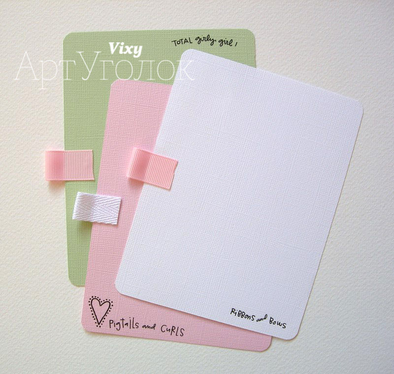 Шаг 5. Вкладыши я украсила только натирками и приклеила небольшие отрезки лент для удобного вытаскивания их из кармашков конвертов. Вкладыши подразумеваются для фотографий.