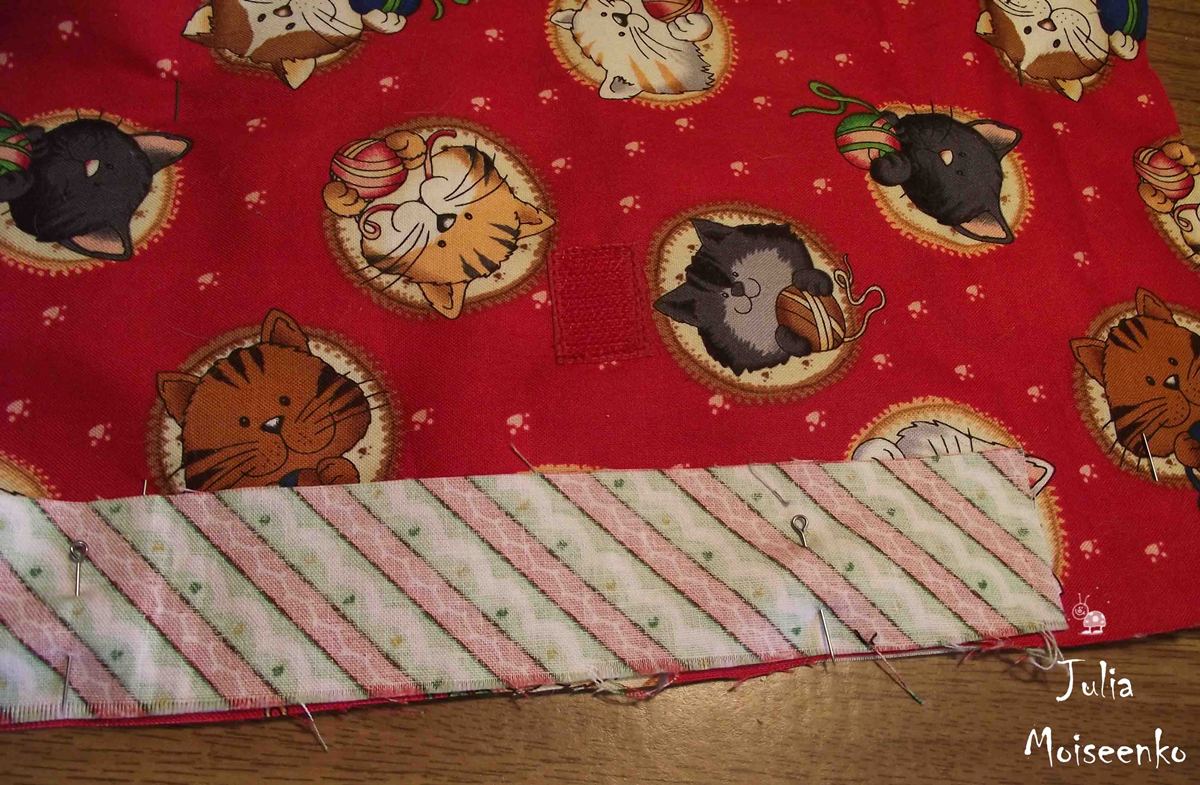 Прикалываем наши кармашки к основе булавками,