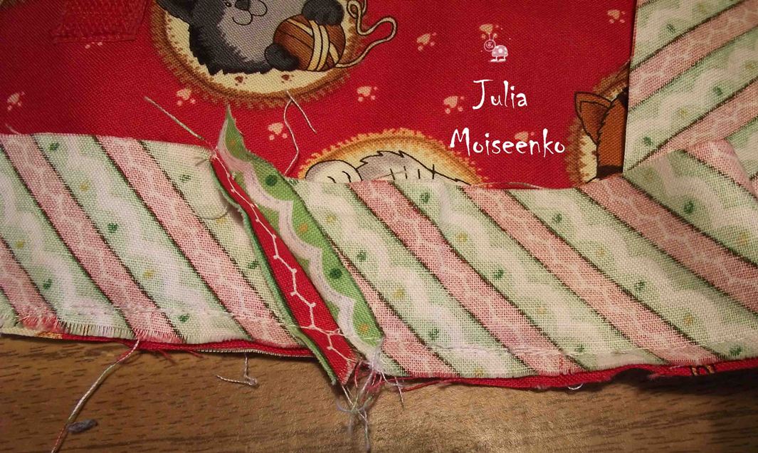 пришиваем кармашки, шов прокладываем точно по границе между цветами.