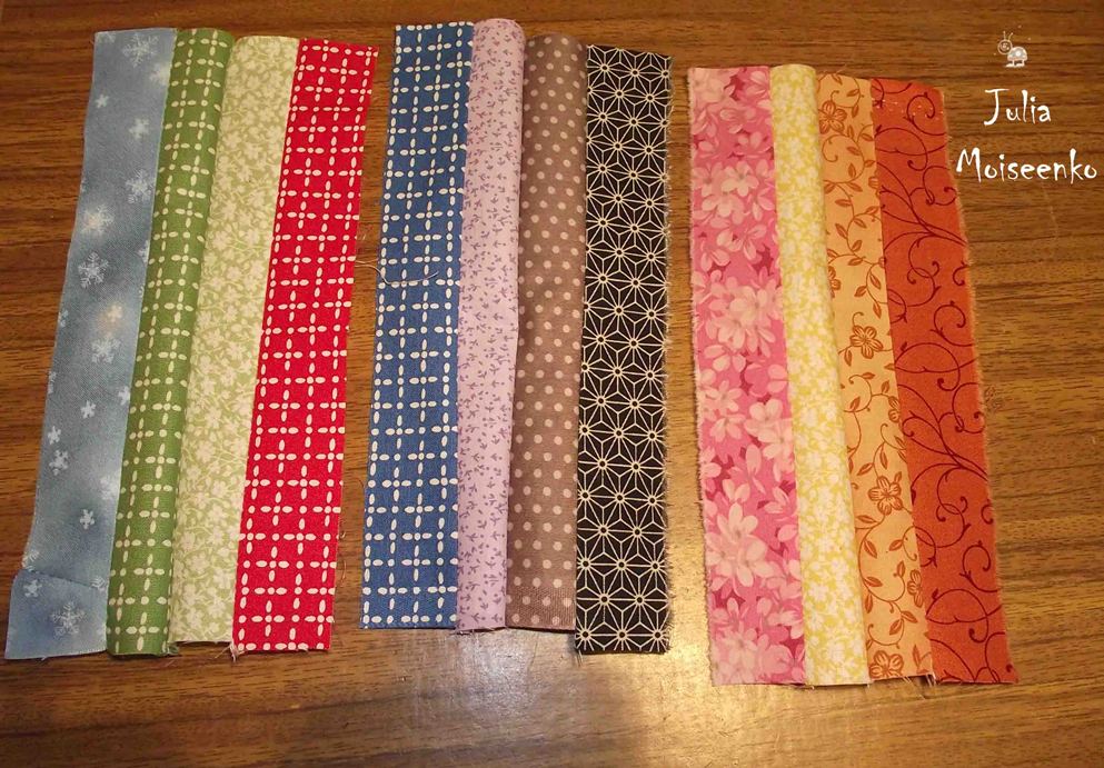 Опять разутюживаем швы и соединяем все части в единый прямоугольник.