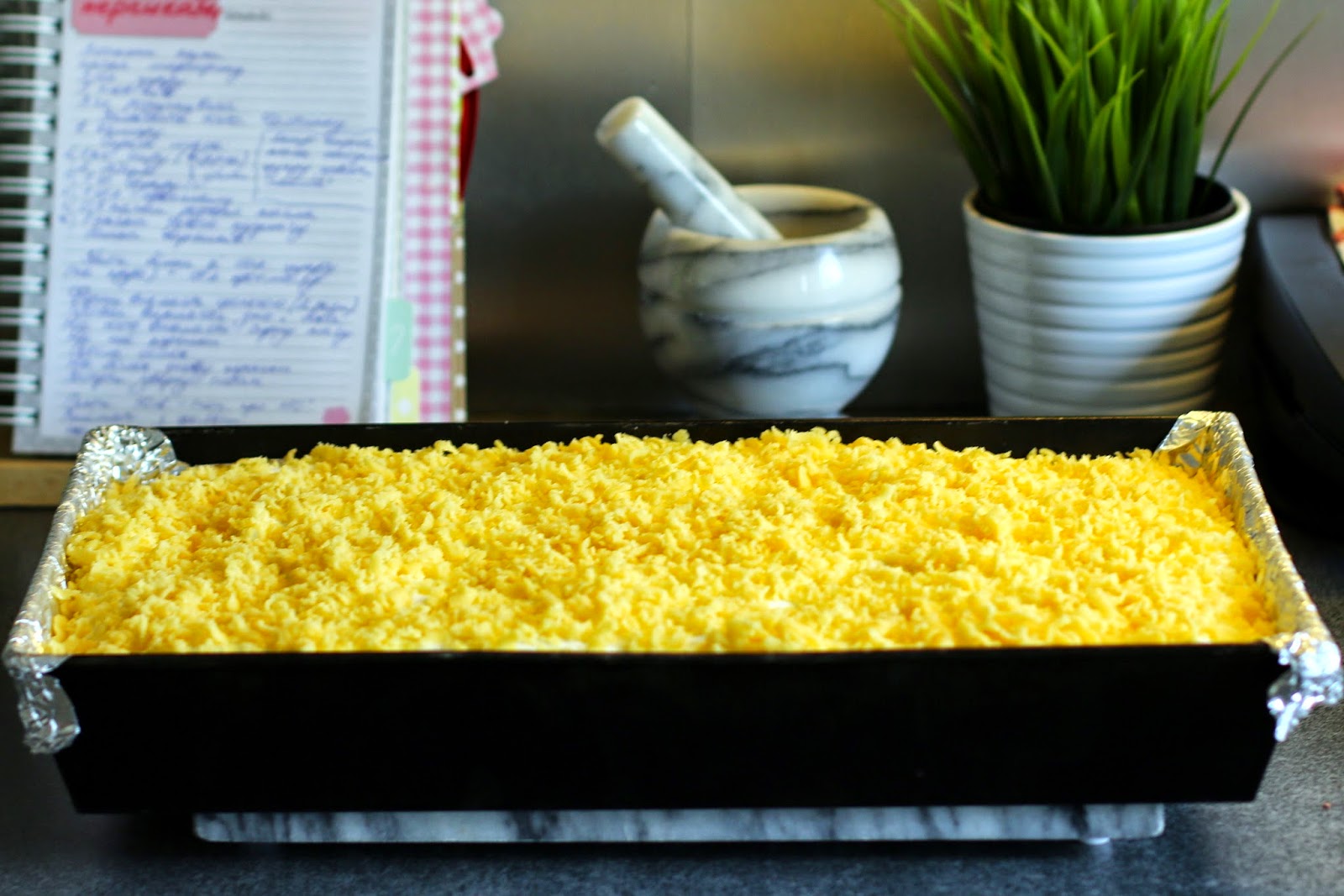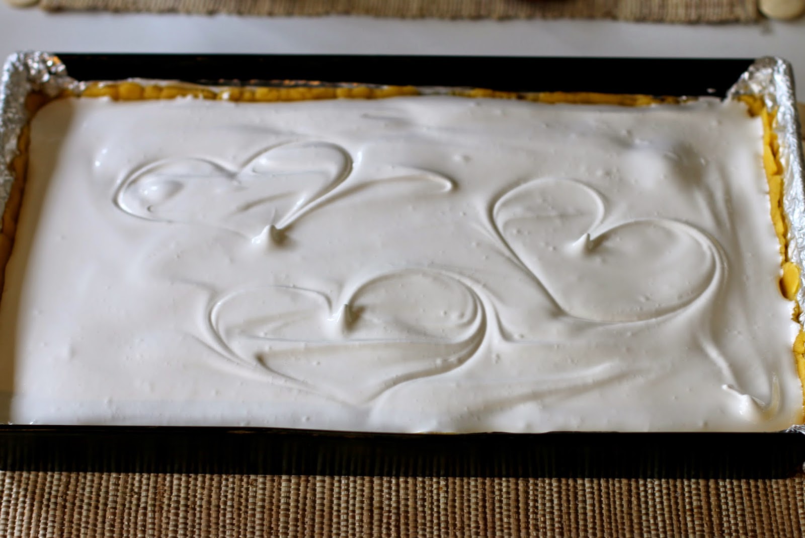 И еще один слой персиков раскладываем на белок, таким же образом.