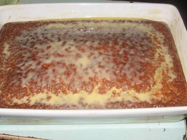 Ещё горячим смазываем его сгущёнкой. Стакана будет в самый раз, но хватит и половины стакана.