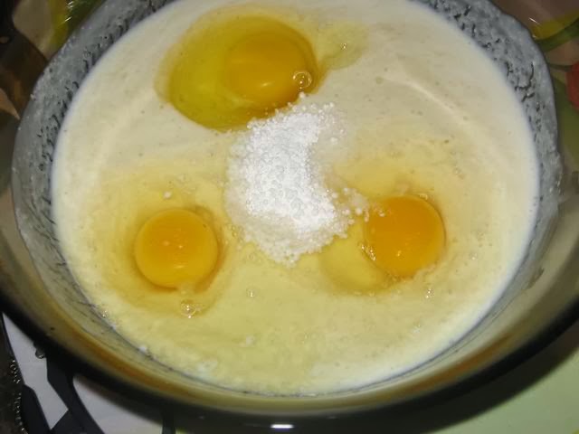 Вбиваем яйца, добавляем разрыхлитель.