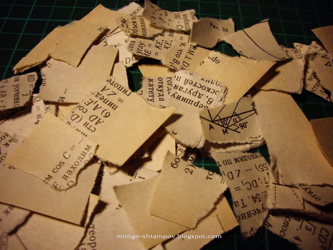 Листы из которой я порвала не мелкие кусочки. Лучше бы поля тоже оборвать, чтобы поменьше было пустой бумаги.