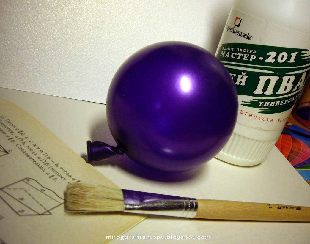 Итак, нам понадобится воздушный шарик диаметром 5 дюймов, клей ПВА, кисточка и газета или ненужная книга.