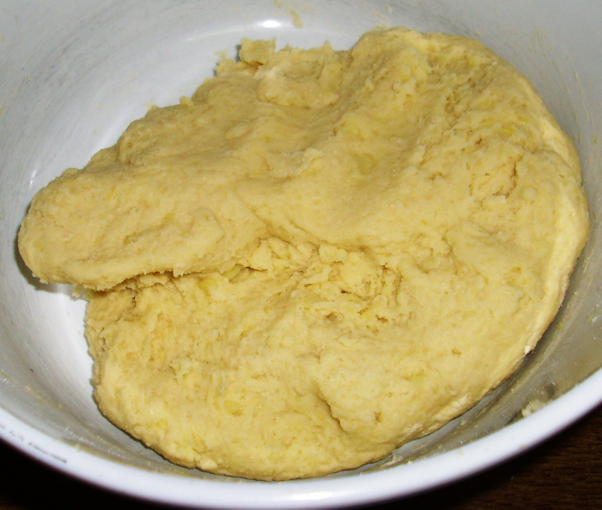 В Картофельное пюре добавить яйцо, муку и соль. Замесить тесто.