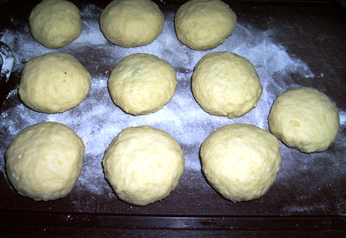 Тесто сформировать в виде лепешки , нафаршировать их грибами ,слепить .Из указанных продуктов получится 10 средних кнедлей.