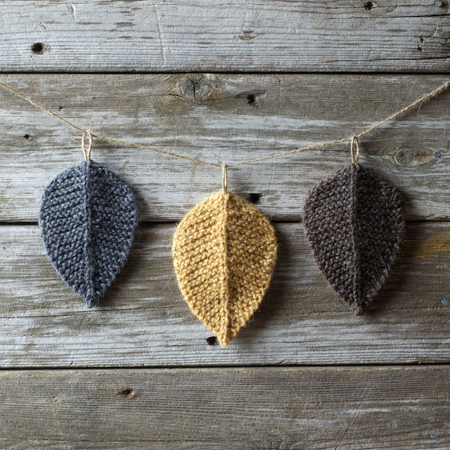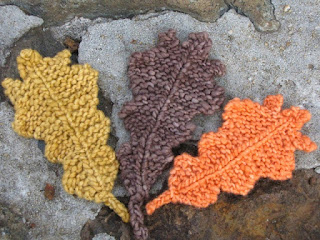 I knitted these leaves in a handspun Merino yarn with size 4mm needles.