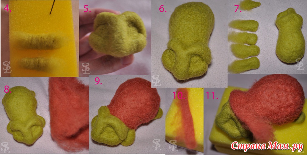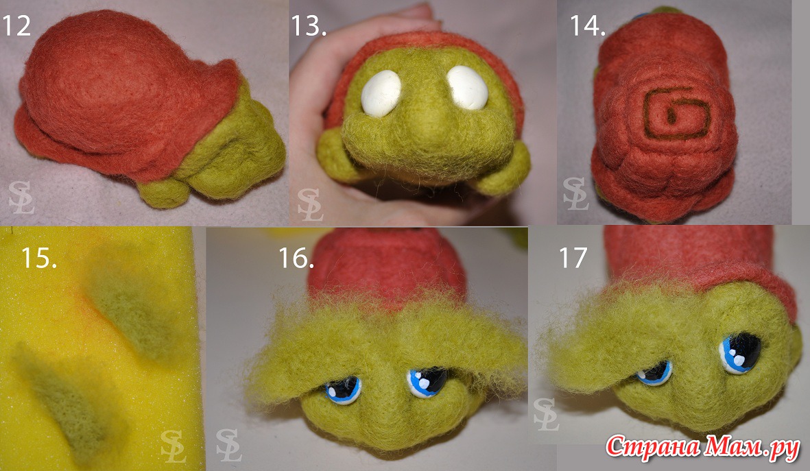 6. Взяли шерсть и сделали тело нашей черепашке (уже какое захотите)