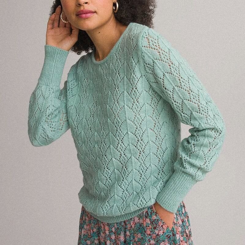 Ещё одна чудесная находка с сайта магазина Ла Редут (модель от бренда Anne Weyburn), — ажурный джемпер с интересным и совсем не сложным в вязании геометрическим узором в виде ромбов.