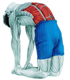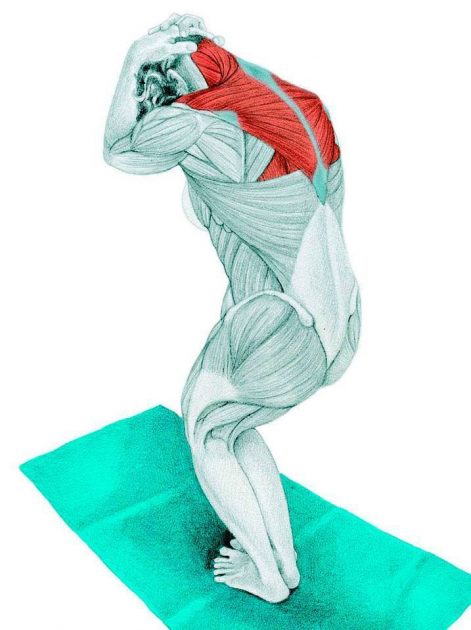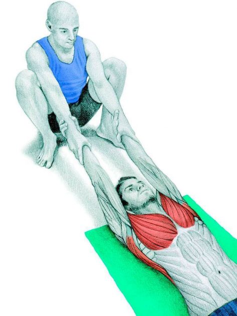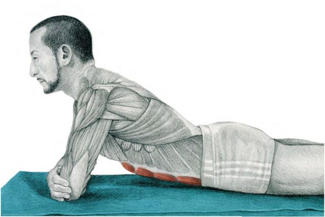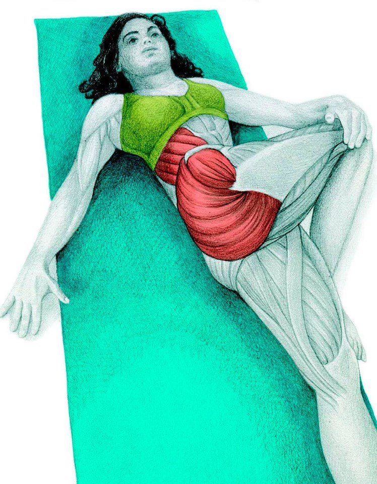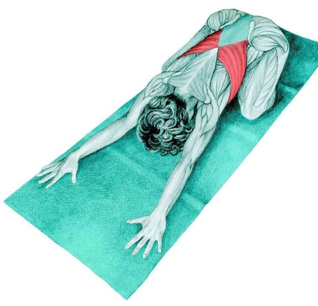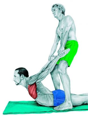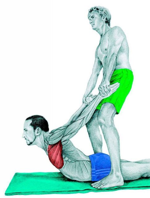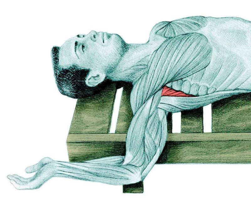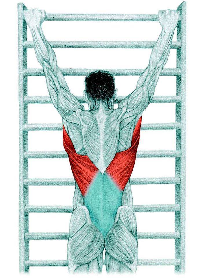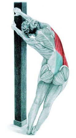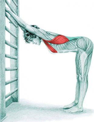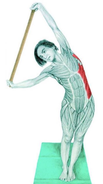 Растягивает внешние косые мышцы живота и широчайшей мышцы спины.