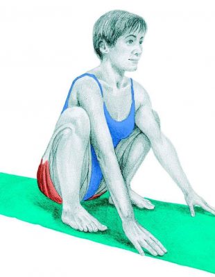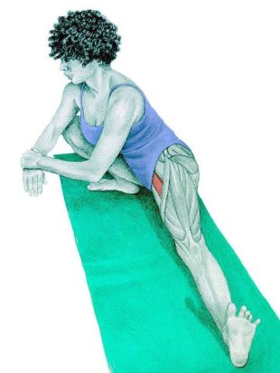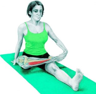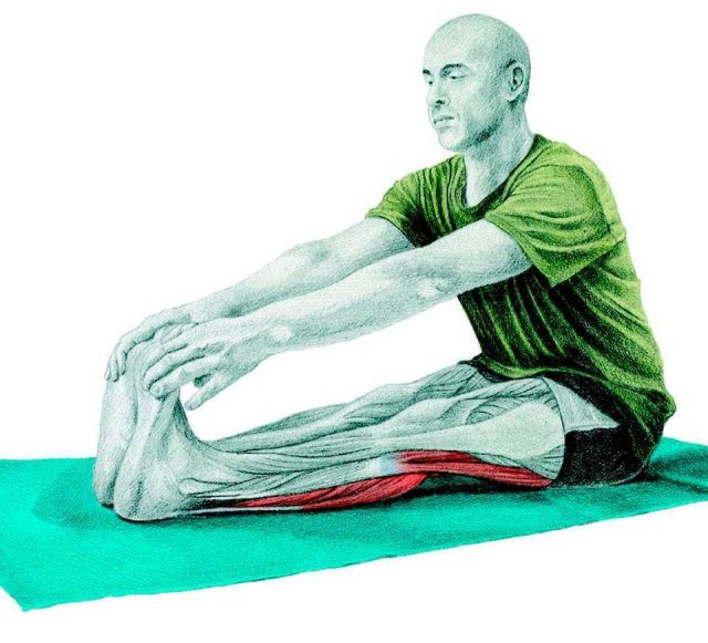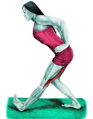 Растягивает подколенные сухожилия и икроножные мышцы.