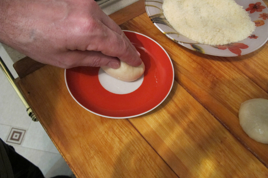 Заготовочку окуните сначала в масло,