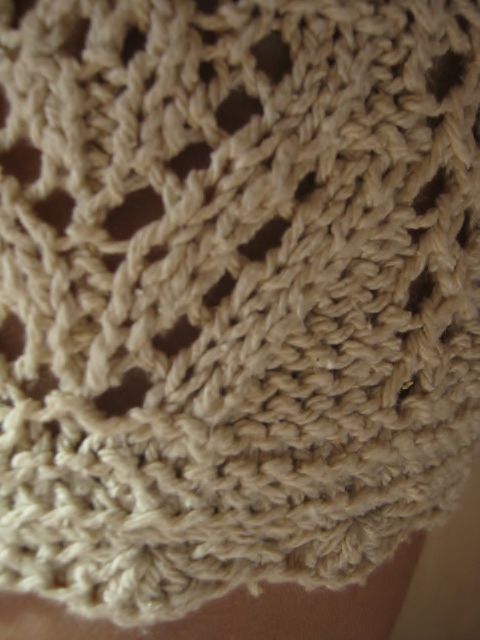 Матовая пряжа, мягкая, с мохрушками, что-то среднее между хлопком и бамбуком, не отбеленная, абсолютно эко-продукт. При стирке размер не изменился, что очень радует, посмотрим летом, что будет при носке, очень надеюсь еще на то, что в нем будет очень комфортно в жару.